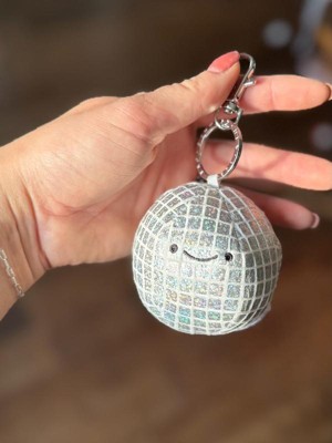 - Sparkly plush disco ball keychain brings party-ready shine