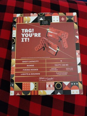 [This review was collected as part of a promotion.] My husband and daughter had so much fun playing with the F.A.O Schwarz Toy Laser Tag Blaster Duo set! Even my son, who's almost 3 years old, was able to play around a bit. The lights and sounds really made the laser tag game more enjoyable and entertaining. The durability of the plastic material seems to be pretty good. My daughter dropped one of the blasters a few times, and it continued to work just fine. I think the F.A.O Schwarz Toy Laser Tag Blaster Duo set would be a great birthday or Christmas gift! Just let them unwrap, put in batteries (not included), and let the laser tag games begin!