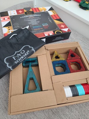 [This review was collected as part of a promotion.] I have had these a couple of weeks now. My two grand daughters 2 and 7 play so nice together. I absolutely love all the products FAO Schwarz makes. This comes with forty magnetic tiles,endless playtime.
