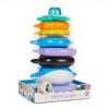 - Promotes fine motor skill development, strength, and coordination as your baby grasps and stacks the rings