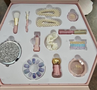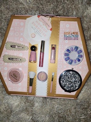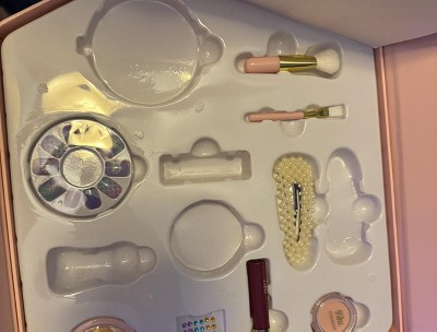 [This review was collected as part of a promotion.] This is super adorable! They get a surprise when they lift the flap, and it contains all kinds of sweet girly stuff. All of it is well made and not super flimsy, and my daughter loved the nails she could wear. Makeup was light and easy for her to apply on her own. I love the hair clips and mirror. Very cute set!