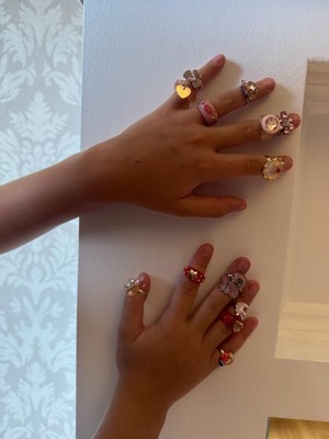 [This review was collected as part of a promotion.] My girls absolutely love this set. The rings are so cute, colorful, and very well made. I love that there are so many different styles to mix and match, and the keepsake display makes them easy to store and organize. They really let kids show off their own style and personality. Honestly, I wish they came in my size too lol. I will definitely be purchasing these again as gifts!