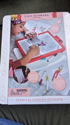 A: Hello - Thank you for asking. The FAO Schwarz Flawless Fashion Designer Light-Up Tracing Tablet works best with 8.5" x 11" paper. If you have any additional questions or concerns, please connect with our team directly at 1-800-374-2744 or fill out a form at https://mscustomercare.com/.