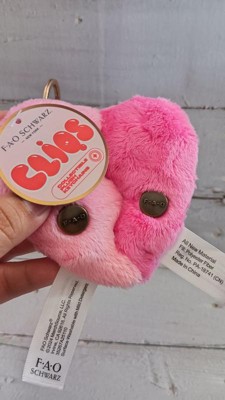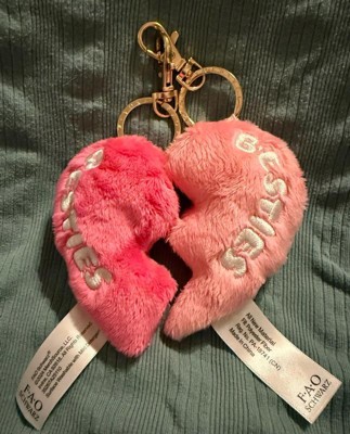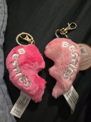 [This review was collected as part of a promotion.] Fao Schwarz toy plush Keychain bff are soft and furry. These have the words 'besties' on each side which is perfect to share with a friend or family member. Each side makes up a heart. One side of the heart is a darker shade of pink and the other is a lighter shade. These have the classic Fao emblem on the back. I could do without the large tag that sticks out but still a cute keychain.