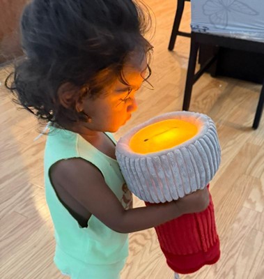 [This review was collected as part of a promotion.] It’s super cute flashlight. My kids love it and share to play. It’s a huge flashlight with 11 inches. The color combination is nice and user friendly. The material is soft and cuddled. The sound and light are a great combo. However, just a small thing to mention, there is no battery attached like the manual.