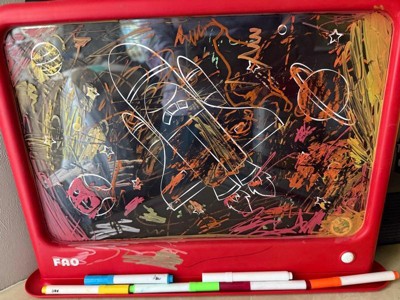[This review was collected as part of a promotion.] This is such a fun gift. It reminds me of the etch a sketch except is vibrant and easier to use. The toy can withstand travel and be a good distraction for kids.