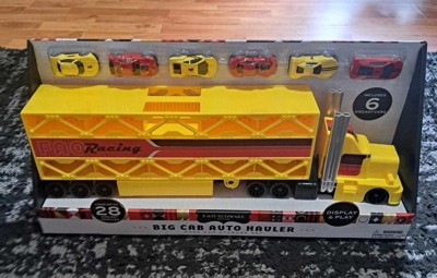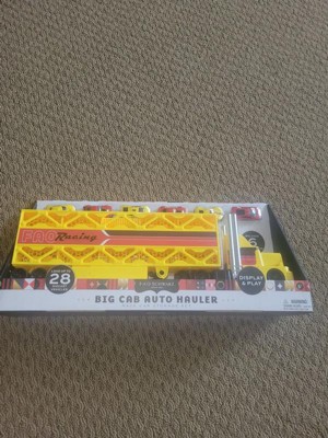 [This review was collected as part of a promotion.] This Go The Distance big cab auto hauler is huge! It comes with 6 small cars but you can add up to 28 mini replicas and use the truck for storage/ display. Beautiful and durable toy! My boy loves it!