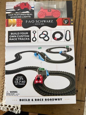 FAO Schwarz Vehicle Playset with DIY Track: Educational Fine Motor Toy, 287 Pieces, Plastic Battery-Operated Car