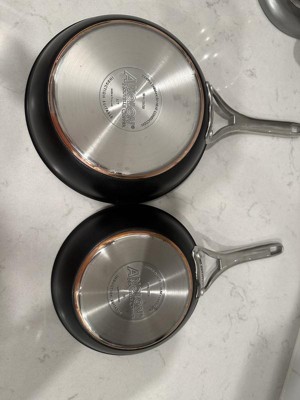 [This review was collected as part of a promotion.] I love these frying pans. I have an 8 inch and a 10 inch. They are aesthetically pleasing, work really well as they distribute heat evenly, are nonstick and the handles remain cool to touch while cooking. They are also extremely easy to clean, which is definitely a plus. These are my go to frying pans!