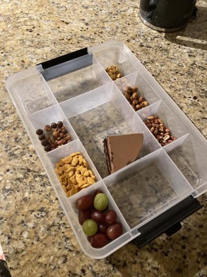 This is a versatile, useful, sturdy container that is great for transporting or storing food. The lid can work as a cutting board. It has separate compartments to keep different types of morsels intact.