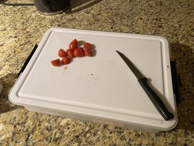 This is such a handy item! It’s basically a giant bento box with a cutting board lid. It’s great for charcuterie because you can store everything in its own compartment and then present it on the board. We’ve used it for sports tournaments- It fits perfectly in the cooler! During a recent hurricane we packed some needed cold/flu supplies to have ready in case we needed to stay in an interior room or evacuate. So easy to put everything needed in the compartments.