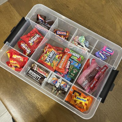 So I snagged this as I saw it would be helpful for our upcoming planned road trip to save snacks. In the meantime, we just went trick-or-treating, and instead of throwing the candy in a bag, we sorted it into the Snacklebox for easy storage and access when we're craving sweets. Aside from snacks and sweets, I also see it being used for storing craft items in the future.