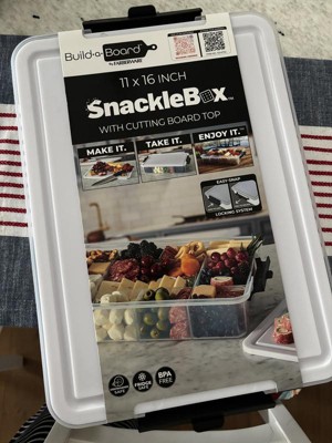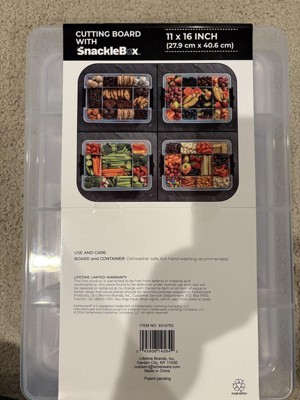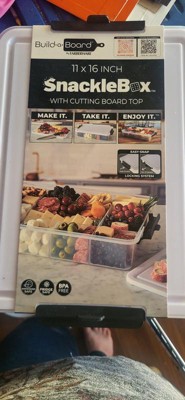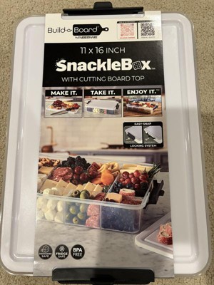 Snacklebox is my new favorite go-to for party prep. It is well made and has lots of compartments of different sizes to hold all my small party foods. Having the top double as a cutting and serving board is great. It stores easily with other similar sized items in a cabinet. The side handles lock in place so no spills. Great item!