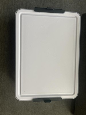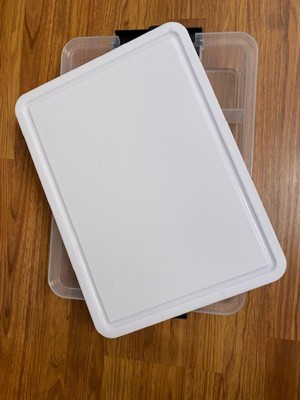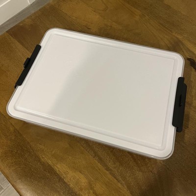 This is a sturdy storage container for your snacks or hobby items. The snapping locking handles seem like they will hold up to a lot of use. I can't wait to take this on a road trip. Generously sized, I am confident this will hold enough snacks to get us all the way to the in-laws' house! There's even an integral cutting board in the lid.