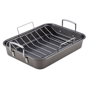 - EASY HANDLING: The nonstick roaster pan features wide dual-riveted handles and wide handles on the chrome-plated rack to aid in removing meats