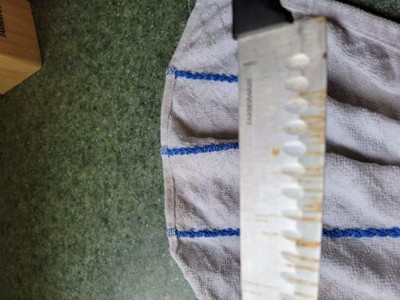 A: Thank you for your recent purchase of the Farberware 22 Piece Never Needs Sharpening Triple Riveted Knife Block Set! The serrated knives can not be honed/sharpened with a honing rod. Farberware does stand behind its products and we kindly ask that you please reach out to us at custserv@farberware.com for further assistance.