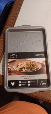 [This review was collected as part of a promotion.] The Farberware 10x15 nonstick cookie pan with Disney Mickey Mouse detail is a fully functional baking tool. The pan's size is good for a variety of baking needs not just cookies. The non- stick coated bottom allows for even heat distribution and easy takes and cleaning.