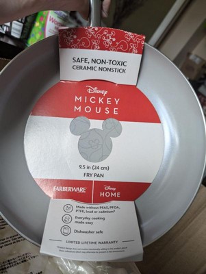 [This review was collected as part of a promotion.] I initially liked the bold red color of the pan and got high hopes for this to be my go to pan, but it didn't pull out off. The inside of the pan is a bit of an issue. The Ricky mouse idea was there, but when mixed with the squiggly lines, it is hard to tell what it is. I showed it to several people, no one recognized it as Micky or Disney. Also I really thought the lines were going to be the color changing lines like my other pans to tell when it is hot, but nope, just lines.... I think that was a missed opportunity. The pan seems very durable and handles well, but the big problem is the non stick. We'll, it isn't. I started with just heating tortillias and now have a permanent brown spot that won't clean where the tortilla stuck to the pan. Also I tried with eggs and just was a mess. Two dishwasher cycles and it looked like it did when it went i in, still full of eggs. Hand scrubbing got it, but I feel that type of scrubbing will take any nonstick left and remove it. Over all, the sticking of this pan is preventing me from using it as my daily driver.