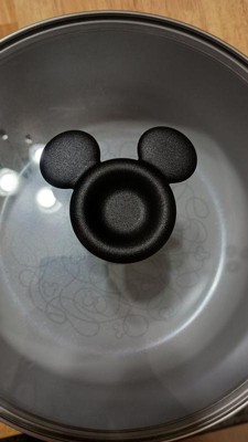 - STACKABLE LID: Tempered-glass lid with steam vent features Mickey-shaped lid knob and is stackable with other lids in the collection