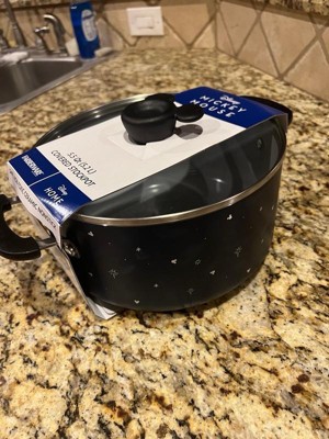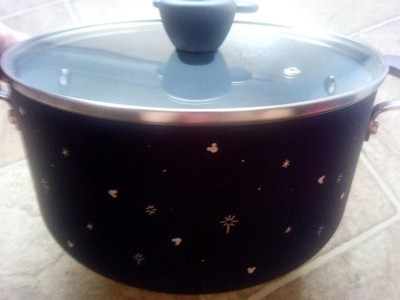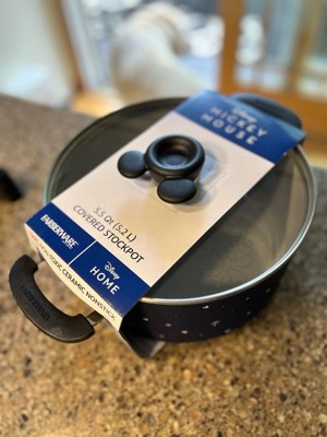 [This review was collected as part of a promotion.] This Disney 5.5 qt Sauce pot is so cute. It is made with ceramic and is a no. Stick pot. Plenty of room for sauce for the whole family. I especially love the flat glass life and the Mickey Mouse handle.