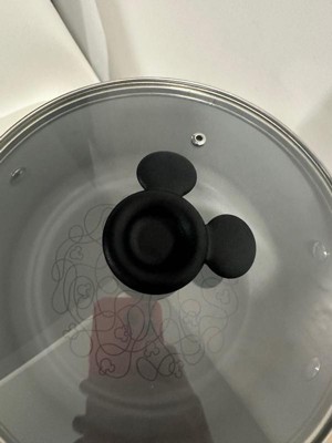 - STACKABLE LID: Tempered-glass lid with steam vent features Mickey-shaped lid knob and is stackable with other lids in the collection