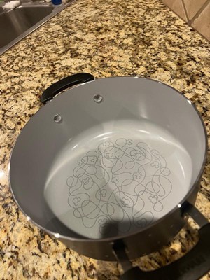 [This review was collected as part of a promotion.] This Disney 5.5 qt Sauce pot is so cute. It is made with ceramic and is a no. Stick pot. Plenty of room for sauce for the whole family. I especially love the flat glass life and the Mickey Mouse handle.
