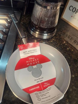 [This review was collected as part of a promotion.] I initially liked the bold red color of the pan and got high hopes for this to be my go to pan, but it didn't pull out off. The inside of the pan is a bit of an issue. The Ricky mouse idea was there, but when mixed with the squiggly lines, it is hard to tell what it is. I showed it to several people, no one recognized it as Micky or Disney. Also I really thought the lines were going to be the color changing lines like my other pans to tell when it is hot, but nope, just lines.... I think that was a missed opportunity. The pan seems very durable and handles well, but the big problem is the non stick. We'll, it isn't. I started with just heating tortillias and now have a permanent brown spot that won't clean where the tortilla stuck to the pan. Also I tried with eggs and just was a mess. Two dishwasher cycles and it looked like it did when it went i in, still full of eggs. Hand scrubbing got it, but I feel that type of scrubbing will take any nonstick left and remove it. Over all, the sticking of this pan is preventing me from using it as my daily driver.