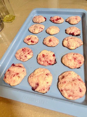 [This review was collected as part of a promotion.] This new Farberware bakeware is just as great as their other products. Love the color schemes but did not like how easily it stained after the first use. The drop zones make it easy for separating distances when baking. Farberware always mars great cook wear. I’m so glad that I was given the opportunity to test this product as a courtesy gift from Influenster.