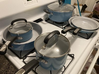 - COOK EASY, COOK HEALTHY: Pots and pans feature a longer lasting, scratch-resistant ceramic nonstick that requires less oil for healthier cooking and effortless food release. Easier cooking and easier cleaning so you can spend more quality time during mealtime.