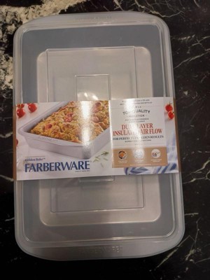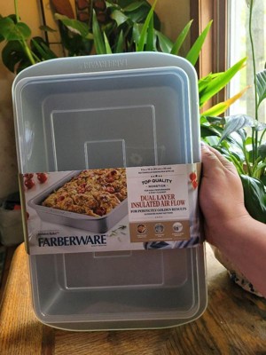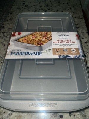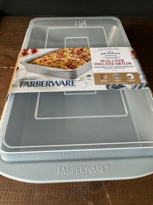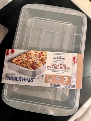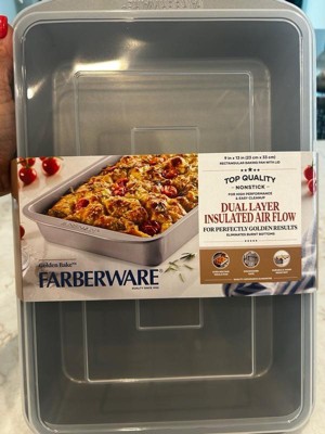 - DELICATE BROWNING: Farberware GOLDEN BAKE rectangular cake pan features air pocket insulation for better airflow and super-even heating - no more burnt bottoms!