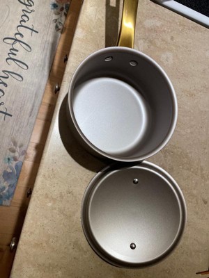 [This review was collected as part of a promotion.] The first thing I noticed is that it heats up/ brings things to a boil very quickly and evenly, almost immediately changing my cooking methods temperature wise. Impressively it cooked my grits in 1/3 if not half the time it normally takes! As in the photos absolutely nothing stuck to the sides when the grits finished cooking. I thought it was cool how the handle cools down wayyyy before the saucepan does!! I cook Everything in that pot now bc it works great and is beautiful to look at making cooking enjoyable! It’s veryyyyy stylish lol and the fanciest saucepan I now own. I received a silver and gold saucepan in which II want a whole Farberware non stick set especially since they offer a limited life time warranty, that alone makes it worth every penny! Farberware would definitely make a great housewarming gift or an awesome update for anyone who needs new cookware. You truly have to experience the difference these make in your kitchen, cooking time and quality of your food to completely appreciate their uniqueness!!