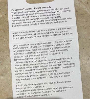 This product contains Fluoropolymer, PTFE, FEP, PFA (PFAS), Aluminum. For more information about chemicals in this product, visit https://disclosures.farberwarecookware.com/.
