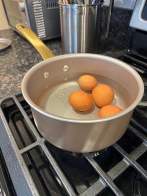 [This review was collected as part of a promotion.] The first thing I noticed is that it heats up/ brings things to a boil very quickly and evenly, almost immediately changing my cooking methods temperature wise. Impressively it cooked my grits in 1/3 if not half the time it normally takes! As in the photos absolutely nothing stuck to the sides when the grits finished cooking. I thought it was cool how the handle cools down wayyyy before the saucepan does!! I cook Everything in that pot now bc it works great and is beautiful to look at making cooking enjoyable! It’s veryyyyy stylish lol and the fanciest saucepan I now own. I received a silver and gold saucepan in which II want a whole Farberware non stick set especially since they offer a limited life time warranty, that alone makes it worth every penny! Farberware would definitely make a great housewarming gift or an awesome update for anyone who needs new cookware. You truly have to experience the difference these make in your kitchen, cooking time and quality of your food to completely appreciate their uniqueness!!