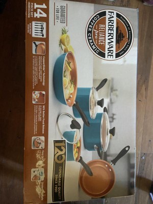 Farberware Reliance Pro 14pc Ceramic Nonstick Cookware Set with Prestige Tools Aqua: Gas & Electric Safe, Rust-Resistant