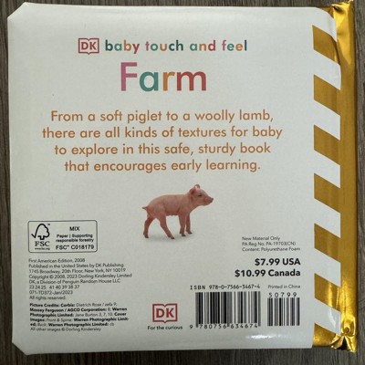 Covering early learning concepts such as colors, shapes, and patterns, Baby Touch and Feel: Farm is perfect for encouraging tiny fingers to explore and young minds to develop, while its sturdy pages with rounded corners make it a book that will last for years of reading fun.