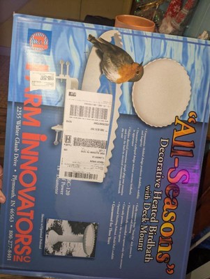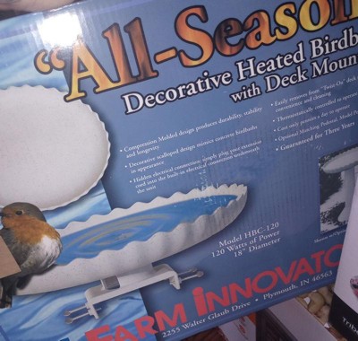 Farm Innovators Outdoor Heated Bird Bath, 120 Watt Stone Birdbath w/ Deck Mount