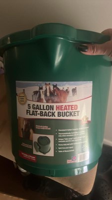 [This review was collected as part of a promotion.] The Farm Innovators heated 5 gallon flat back bucket is made of strong plastic with a sturdy metal handle. Once plugged in the thermostat keeps the contents between 35 and 60 degrees. It has a unique bottom compartment to conceal the electrical cord when not needed. The bucket is oversized and has a handy measurement table marked inside. This is a great product for use on any farm.