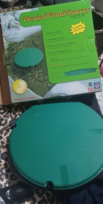 [This review was collected as part of a promotion.] I am looking forward to using the farm innovators heated pond saucer. I have a small pond in my backyard that we recently expanded, the saucer is light weight and a green shade that should somewhat camouflage with the lily pads and other shrubbery. Directions are easy and straight forward. Once the winter hits, i expect to save a little bit of money, and more importantly have my fish survive the winter, while implementing the saucer into my pond regimen.