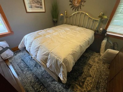 This down comforter impresses with its lightweight design, exceptional warmth, and elegant appearance, making it suitable for year-round use. Guests appreciate its soft organic cotton cover and the evenly distributed fill that prevents lumping. The comforter is easy to integrate with duvet covers thanks to corner loops, and its breathable fabric ensures comfort without overheating. Despite some concerns about odor upon unpacking, many guests find it a worthwhile investment for a cozy night's sleep.