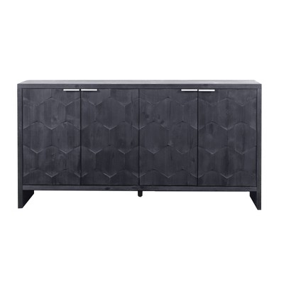 (Farmhouse Elegance): Features antique natural wood finish and wooden decorative doors with a hexagonal pattern, adding a retro, stylish touch that complements any living room, entryway, dining room, or office.