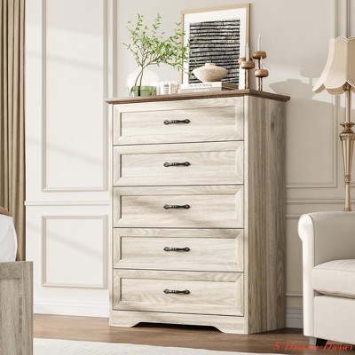 Farmhouse 6 Drawer Dresser for Bedroom, Rattan Chest of Drawers with Storage,Large Dresser Chest of Drawers