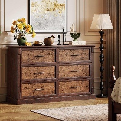 Farmhouse 6 Drawers Dresser, 47" Long Wood Closet Dressers Organizer, Rustic Chest of Drawers