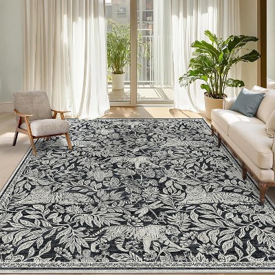 Farmhouse Area Rugs 5x7 Ultra-Soft Geometric Throw Rugs, Non-Shedding Flower Print Floor Carpet, Foldable Low Pile Indoor Mat for Living Room