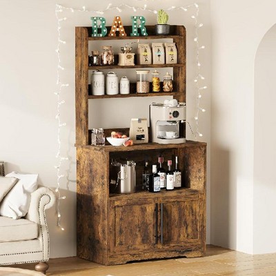 Farmhouse Bakers Rack with Storage Cabinet and Charging Station, Kitchen Hutch with Thickened Tabletop,Pantry Organizer Shelf for Kitchen,Dining Room