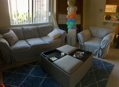 I love the material and color. It was difficult to figure out how to get the cover to look right with our t-cushions. I still couldn't get it quite right after pulling and tugging so much.