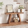 Farmhouse Console Table,2-Tier Wooden Trapezium Sofa Table with Open Storage Shelf