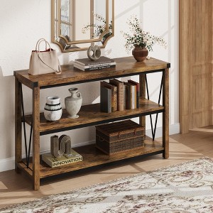 Farmhouse Console Table, 47 Inch Narrow Long Entryway Table with Storage, 3 Tier Wood Console Table