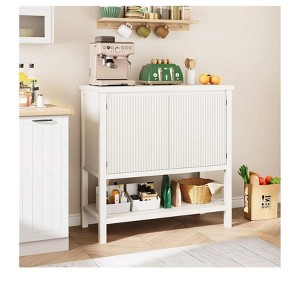 - 1.Elegant Wave Panel Design: This farmhouse console table features two stylish wave panel doors that add a unique touch to your decor, creating a visually appealing focal point in any room.2.Ample Storage Space: With a built-in storage shelf and spacious cabinet, this entryway table provides an excellent solution for organizing and displaying your favorite decorative items, books, or everyday essentials.3.Versatile Multi-Functionality: Perfect for a variety of settings, this table can be utilized as an entryway table, sofa table, or buffet sideboard, seamlessly enhancing the functionality of your kitchen, hallway, dining room, or living room.4.Pristine Pure White Finish: The pure white finish not only highlights the table's elegant design but also ensures it complements a wide range of interior styles, from modern to traditional.5.Sturdy and Durable Construction: Crafted from high-quality materials, this farmhouse console table is designed for durability and stability, providing a reliable surface that withstands daily use for years to come.