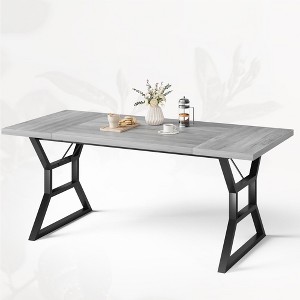 Farmhouse Dining Table for 6, Rectangular Wood Dining Table, Rustic Kitchen Table with Extra Heavy Duty Metal Legs for Dining Room, Outdoor Table for Party, 70.9 * 29.5 * 29.3 Inch (Gray)