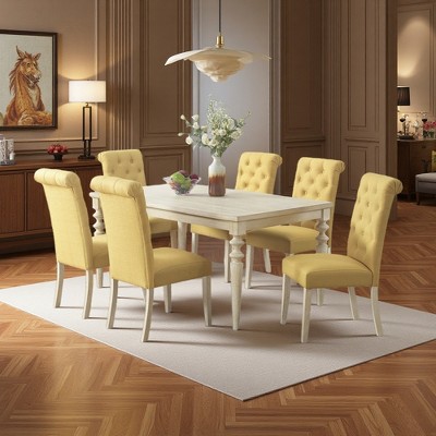 Farmhouse Dining Table Set with 6 Chairs, Beige Tufted Upholstered Chairs, 60x36 Inch Wooden Table,Morden Fort
